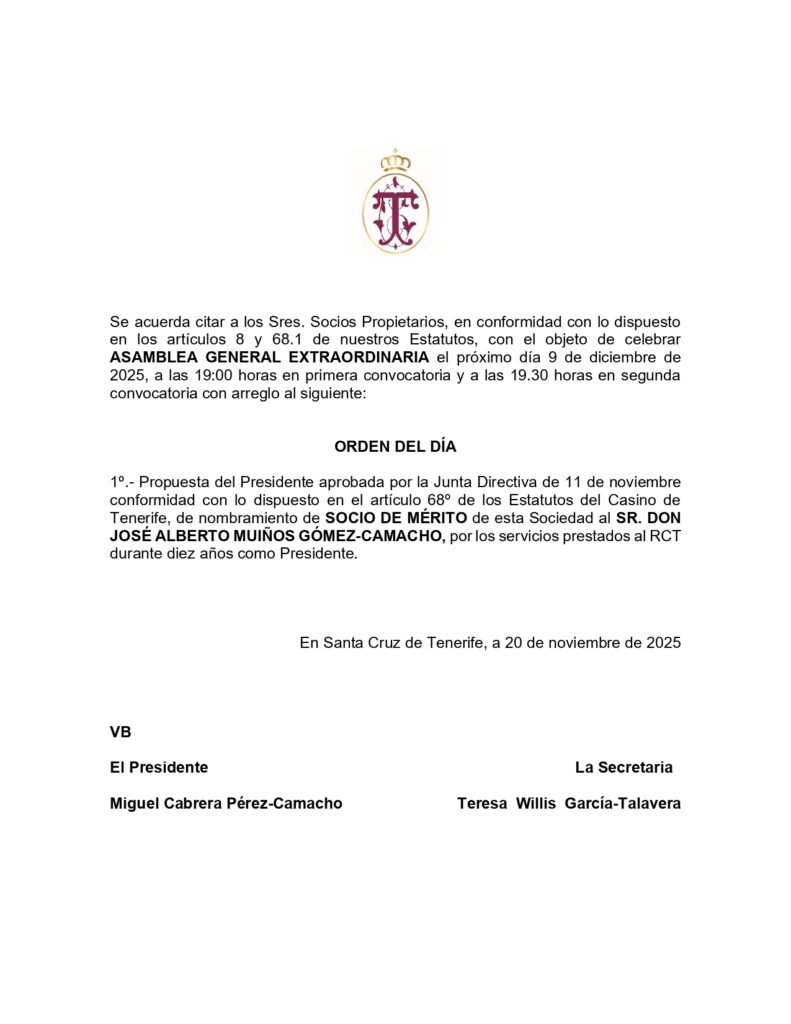 El martes 9 de diciembre a las 19:00 horas en primera convocatoria y a las 19:30 en segunda para el nombramiento como Socio de Mérito del Sr. D. José Alberto ... Leer más