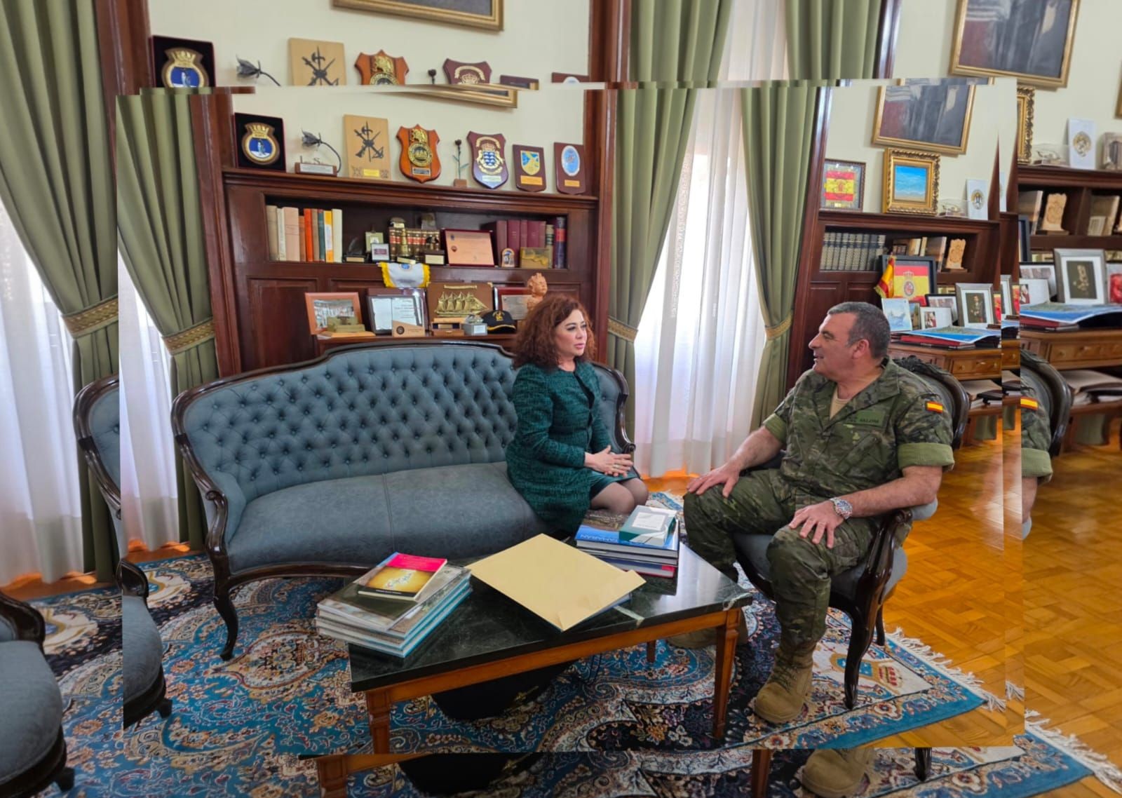 La presidenta del Real Casino de Tenerife, Beatriz Barrera Vera, fue recibida ayer jueves, 12 de marzo, por el teniente general Julio Salom Herrera, jefe del Mando de Canarias del