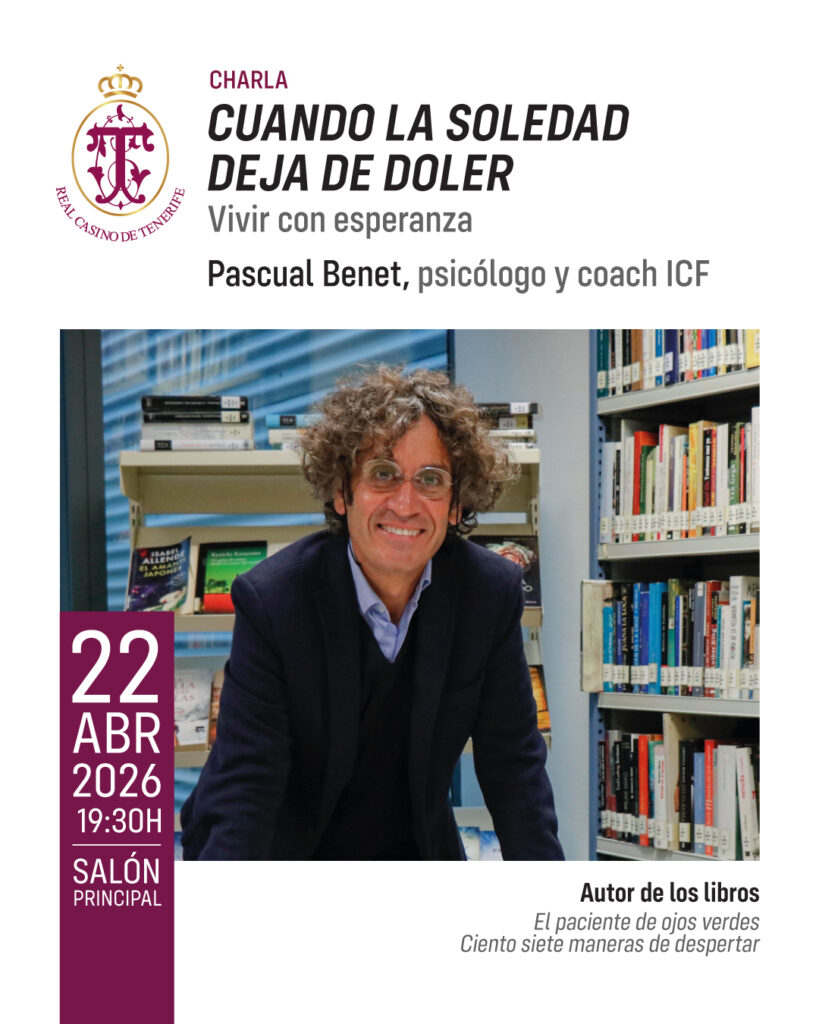 El miércoles 22 de abril, a las 19:30 horas, el psicólogo y coach ICF, Pascual Benet, ofrecerá una charla en el Salón Principal bajo el título "Cuando la soledad deja ... Leer más