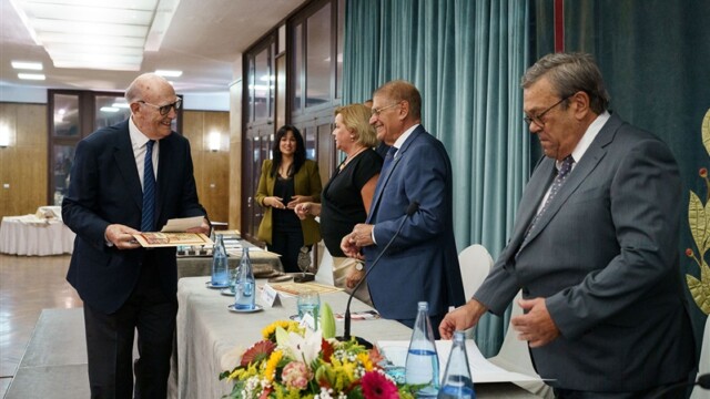 Seguidamente, el presidente, Miguel Cabrera Pérez-Camacho, hizo entrega del Premio Faustino Martín Albertos -nuestra máxima distinción- a José Segura Clavell, exsenador del Gobierno de España y director general de Casa África, quien agradeció esta distinción y destacó la labor cultural desarrollada por el Casino a lo largo de su historia.