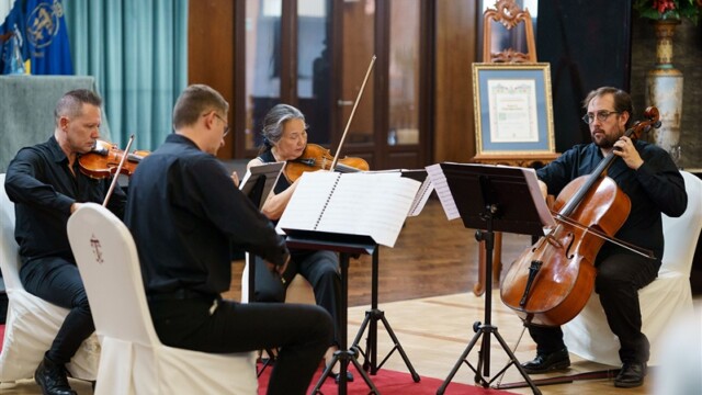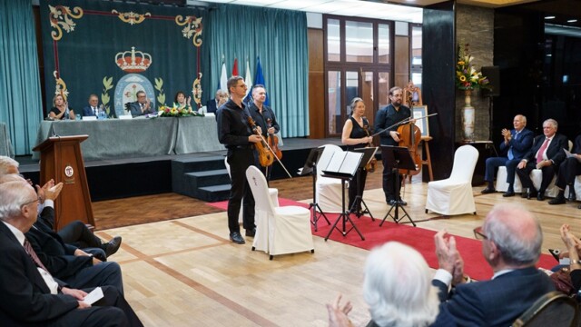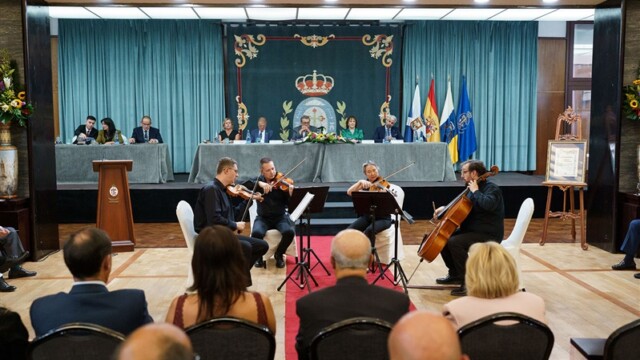 Finalmente, contamos con la actuación del Cuarteto Corelli, que nos ofreció un concierto con obras de Mozart, Tartini, Shostakovich y Gardel, terminando con el Himno de Canarias y el Himno Nacional, un magnífico broche de oro a este XXV Día del Casino.