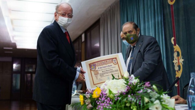 Se hizo entrega de las distinciones a los Sres. Socios Honoríficos y la imposición de la Insignia de Oro y Brillantes al Sr. D. Joaquín Castro San Luis y la entrega del Premio Faustino Martín Albertos al Excmo. Sr. D. Manuel Hermoso Rojas.