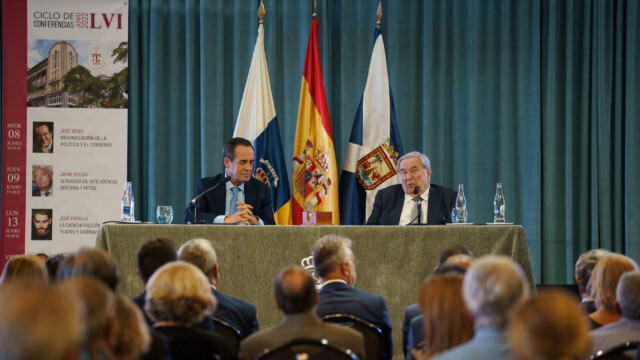 Les dejamos galería fotográfica de la conferencia inaugural del LVI Ciclo de Conferencias del RCT, que corrió a cargo del expresidente del Congreso, exministro de Defensa y expresidente de Castilla-La Mancha, José Bono, que tuvo lugar ayer miércoles, 8 de junio, con presentación de Jerónimo Saavedra.