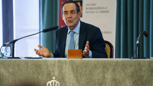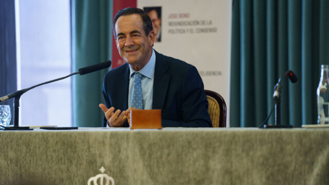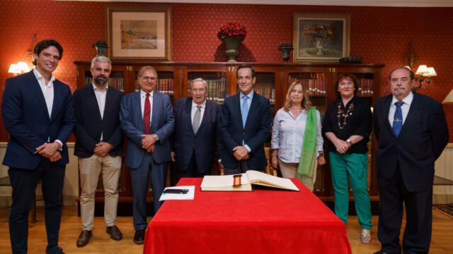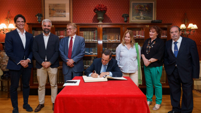 Tras la conferencia, José Bono firmó en el Libro de Honor del Casino