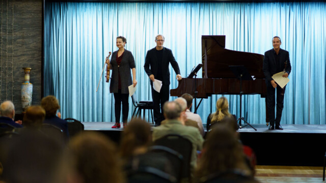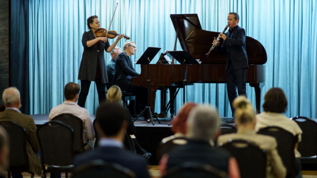 Les dejamos galería fotográfica del concierto ofrecido en la tarde de ayer, dentro del programa de la Semana de Música, por el trío integrado por el clarinetista Cristo Barrios, el pianista Dirk Mommertz y la violinista Erika Geldsetzer, ambos de Alemania.