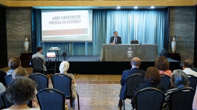 Les dejamos galería fotográfica de la ponencia «La libertad de prensa en España», ofrecida por el periodista Albert Castillón, que tuvo lugar ayer lunes, 16 de junio, en el Salón Principal, enmarcada dentro del LIX Ciclo de Conferencias 2025.