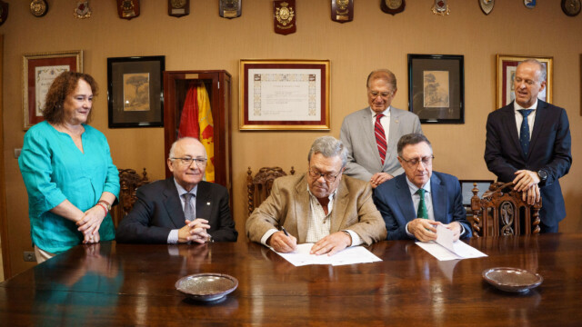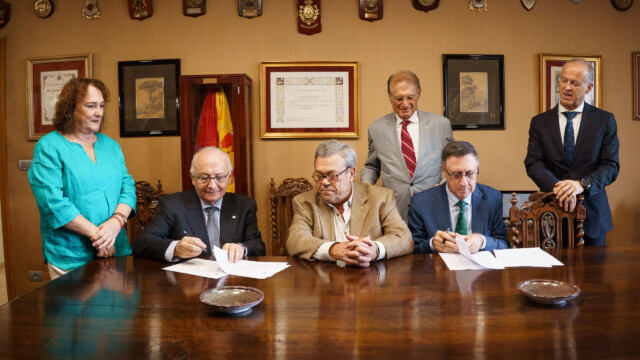 El Real Casino de Tenerife firmó ayer jueves, 14 de noviembre, un acuerdo de colaboración con Cajasiete y Mutua Tinerfeña para llevar a cabo la restauración del mural Friso Isleño, una de las obras más representativas del pintor canario José Aguiar. La firma del acuerdo ha tenido lugar en las instalaciones del Casino, con la presencia de los responsables de las tres instituciones.