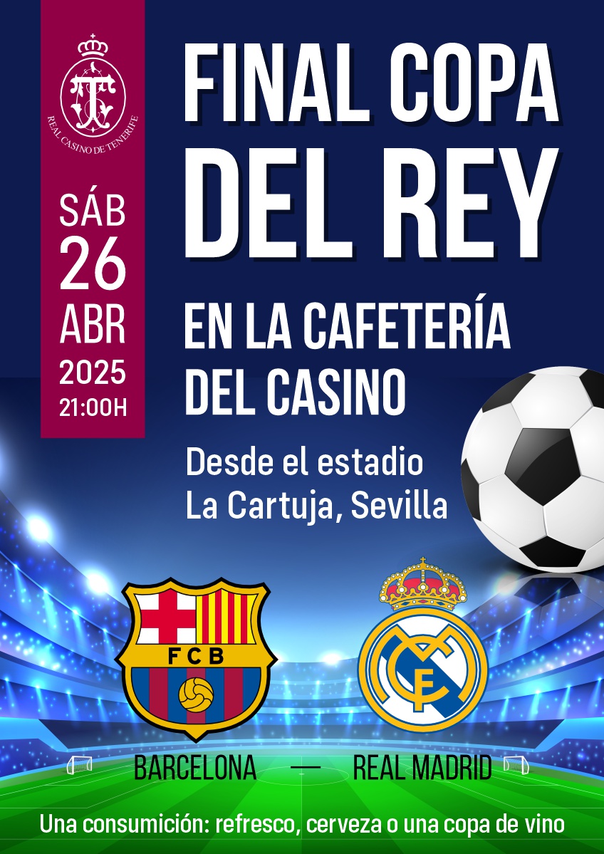Este sábado, 26 de abril, a las 21:00 horas, se celebrará en el Estadio de la Cartuja, en Sevilla, la final de la Copa del Rey entre el FC Barcelona y el Real Madrid.