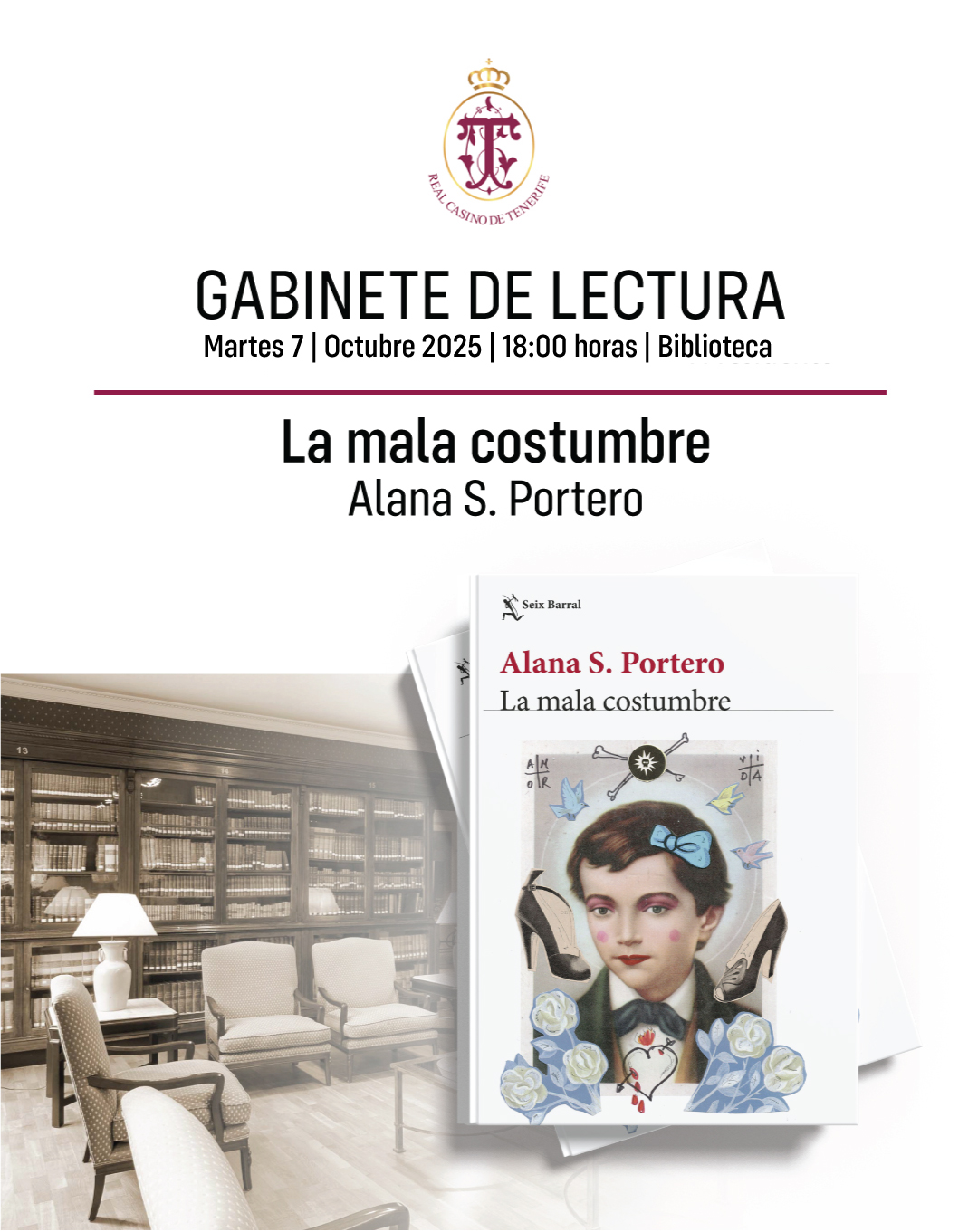 El martes 7 de octubre, a las 18:00 horas, se celebrará en la Biblioteca una nueva edición del Gabinete de Lectura, bajo la coordinación de Pilar Negrín del Campo y la dirección del bibliotecario del RCT, José Padilla Barrera.