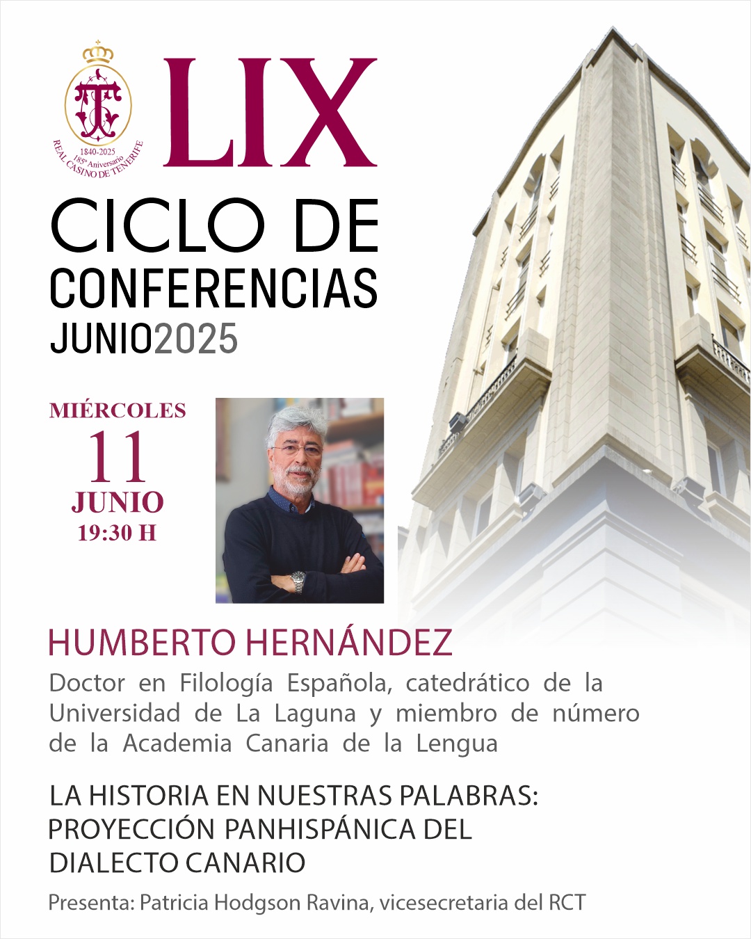 El miércoles 11 de junio, a las 19:30 horas, el doctor en Filología Española Humberto Hernández ofrecerá la ponencia La historia en nuestras palabras: proyección panhispánica del dialecto canario, enmarcada dentro del LIX Ciclo de Conferencias 2025.