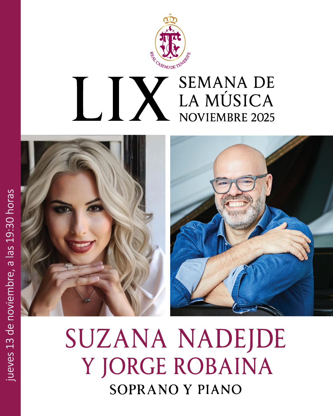 El jueves 13 de noviembre, a las 19:30 horas, dentro de la programación de la Semana de Música, se ofrecerá en el Salón Principal el concierto a cargo de Suzana Nadejde (soprano) y Jorge Robaina (pianista)