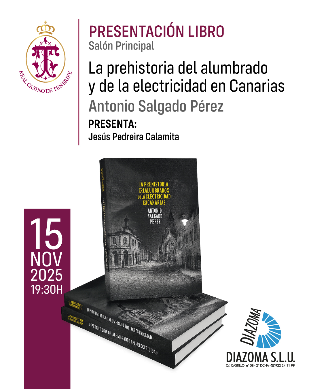 El sábado 15 de noviembre, a las 19:30 horas, se presentará el libro La historia del alumbrado y de la electricidad en Canarias, del auditor y escritor Antonio Salgado Pérez.