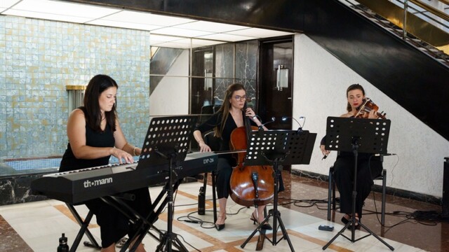 Previamente, se ofreció una copa de bienvenida en el Hall, donde el grupo AMA Trío amenizó la recepción de los Socios y sus invitados con música en vivo.