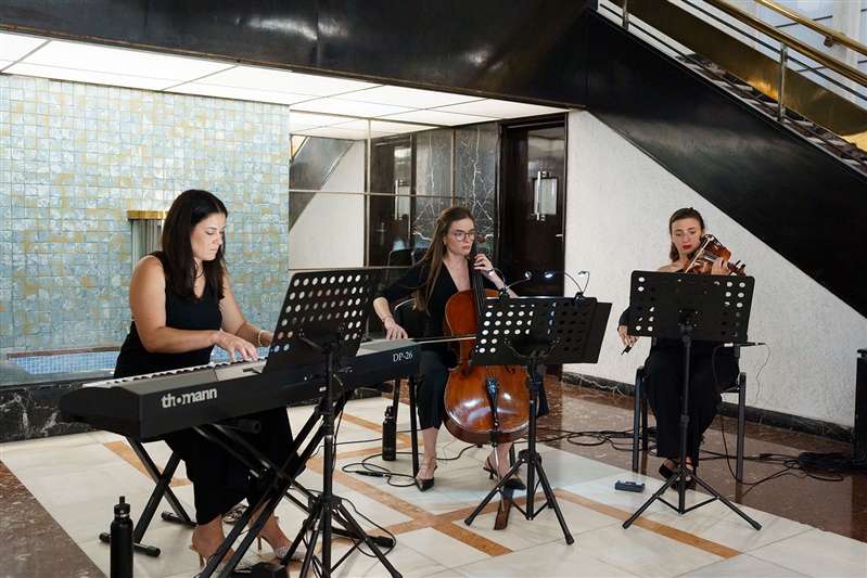 Previamente, se ofreció una copa de bienvenida en el Hall, donde el grupo AMA Trío amenizó la recepción de los Socios y sus invitados con música en vivo.