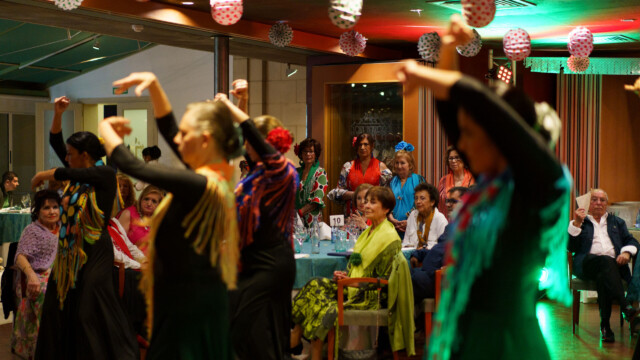 Les dejamos galería fotográfica de la celebración de la Fiesta de Sevillanas con motivo de la Feria de Abril, en la que actuó magistralmente el grupo de baile de Genaro Arteaga y en la que se sirvió un menú típicamente andaluz.
