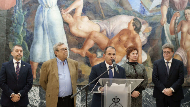 En sus palabras, el presidente del RCT destacó que este acto supone un hito en nuestra institución tras meses de arduo y riguroso trabajo desarrollado por Carmen Suárez, destacando que esta enorme labor ha sido posible gracias a la colaboración conjunta de dos grandes instituciones: Cajasiete y Mutua Tinerfeña, que han dado un ejemplo de lo que debe ser la colaboración privada en la conservación bienes que son patrimonio de todos, un símbolo de lo que significa el empuje de la sociedad civil -de la que siempre hemos sido protagonistas- y un compromiso con toda la ciudadanía que puede ya disfrutar y admirar este precioso mural, una de las obras más importantes de la pintura en Canarias, de la que tan orgullosos nos sentimos.