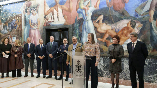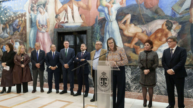 Les dejamos galería fotográfica de la finalización de la restauración del mural Friso Isleño, obra del pintor José Aguiar, declarada Bien de Interés Cultural, que tuvo lugar ayer miércoles, 17 de diciembre, en el Hall Principal.