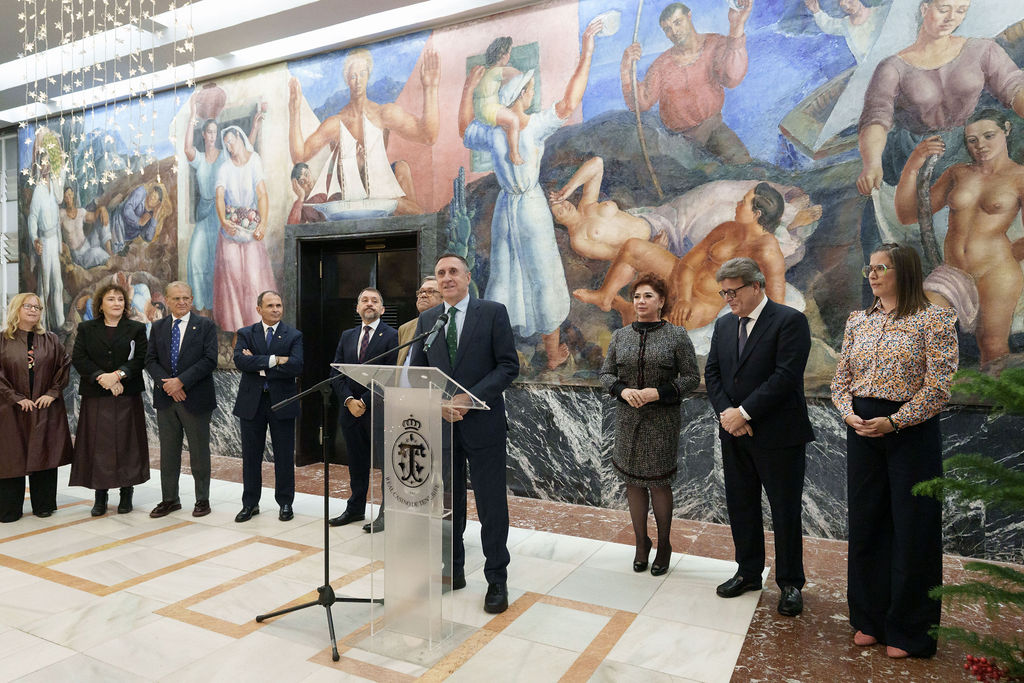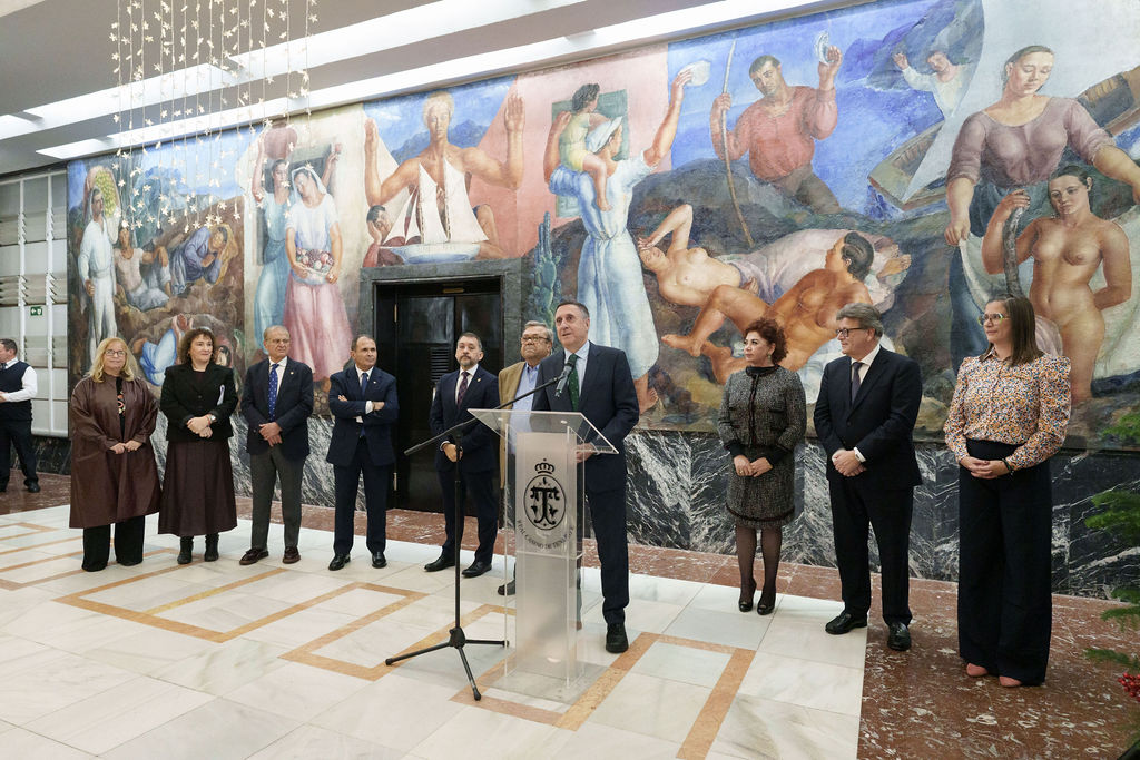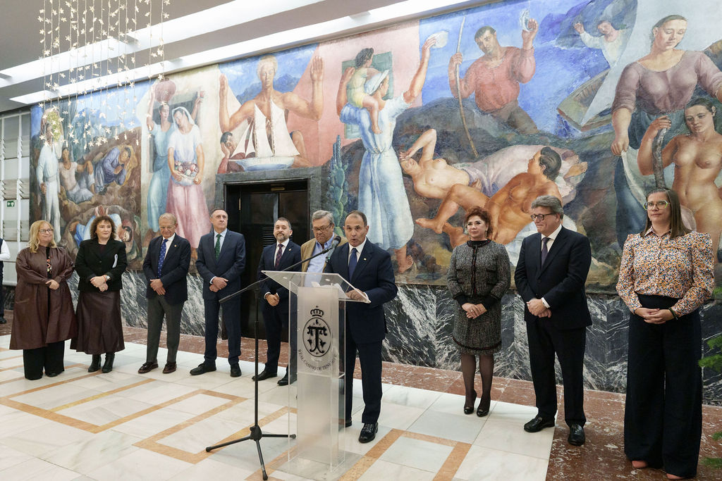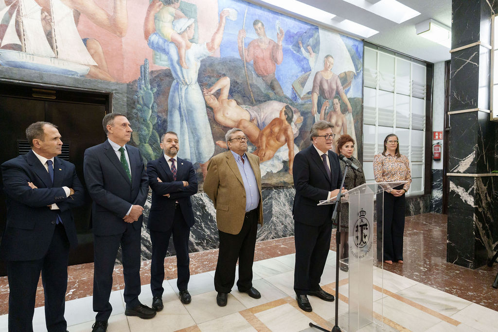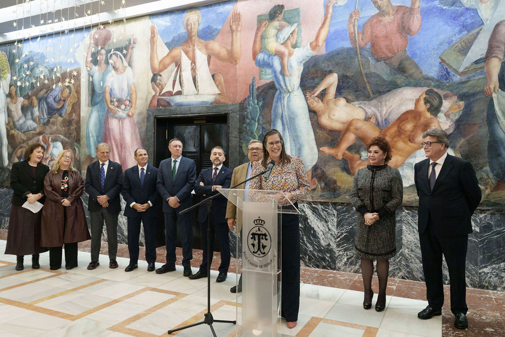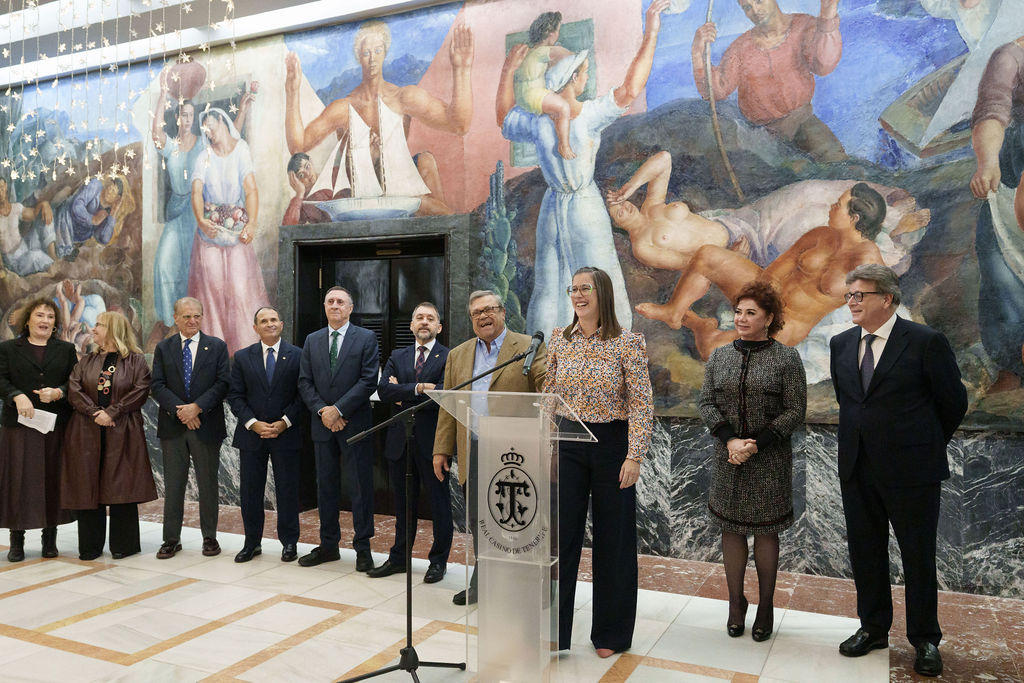 Les dejamos galería fotográfica de la finalización de la restauración del mural Friso Isleño, obra del pintor José Aguiar, declarada Bien de Interés Cultural, que tuvo lugar ayer miércoles, 17 de diciembre, en el Hall Principal.