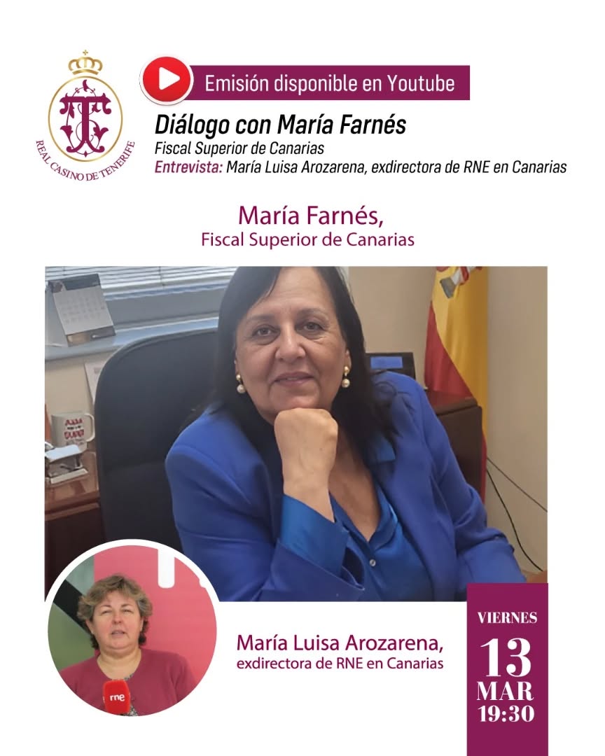 El Real Casino de Tenerife acogió una nueva sesión del ciclo “Diálogos con…”, en la que María Farnés, fiscal superior de la Comunidad Autónoma de Canarias, compartió su experiencia y