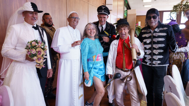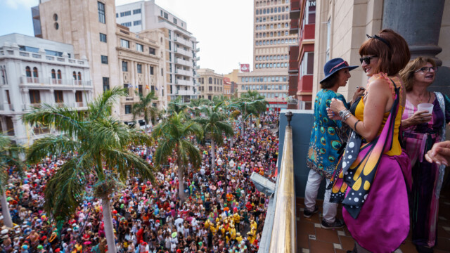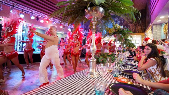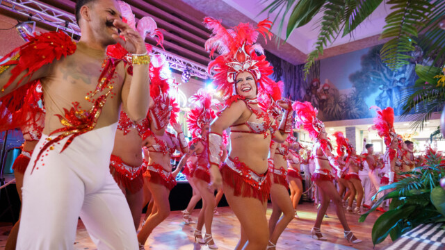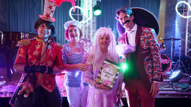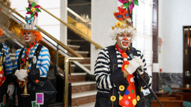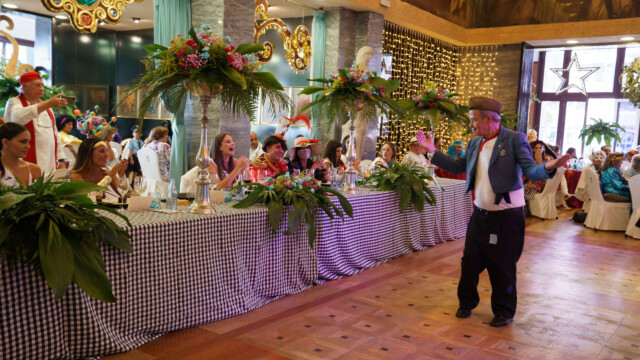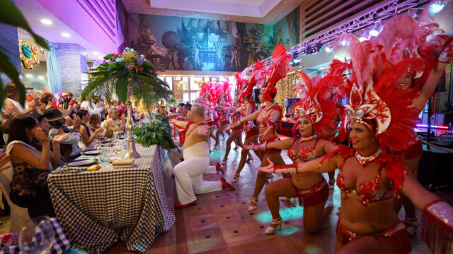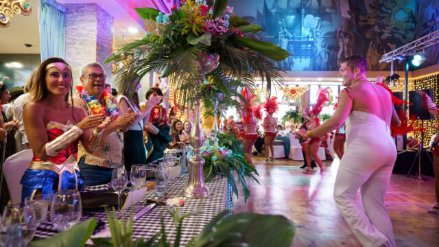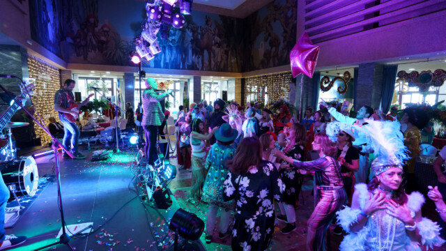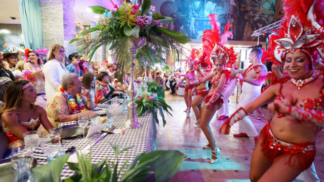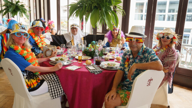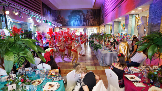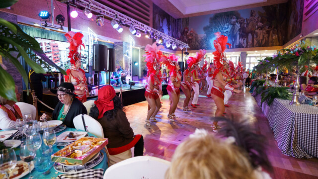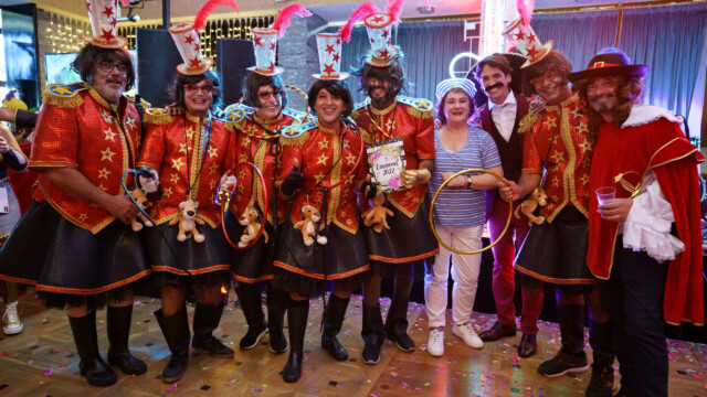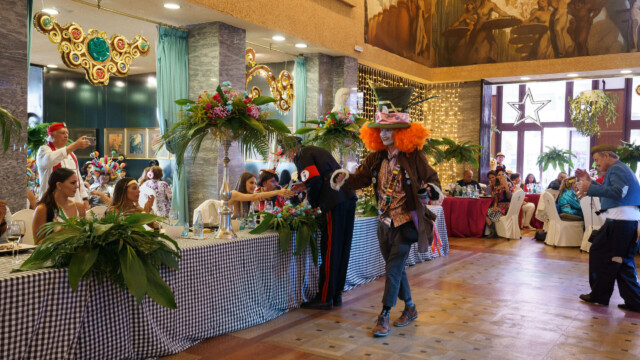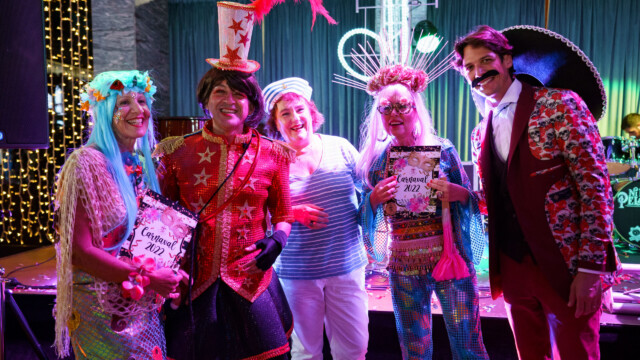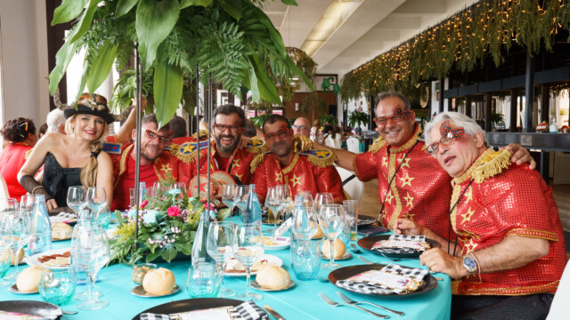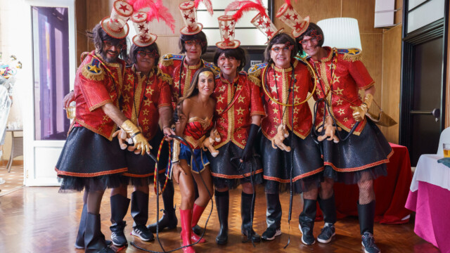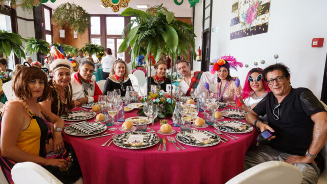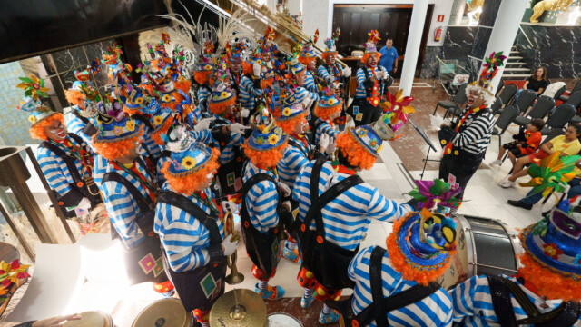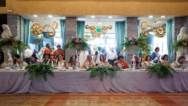 Les dejamos galería fotográfica del extraordinario Almuerzo de Piñata en honor a la Reina del Carnaval y su Corte, celebrado el pasado sábado, 25 de junio, en el Salón Principal, donde pudimos disfrutar de las actuaciones de la comparsa Los Cariocas, el grupo Ni un Pelo de Tonto y el DJ Estrada, quienes animaron el almuerzo tras los postres, junto a los Personajes del Carnaval.