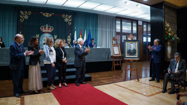 A continuación, en el Salón Principal del Casino, se dio inicio al acto institucional, que comenzó con el descubrimiento del retrato del que fuera presidente de nuestra institución entre 1906 y 1908, Blas Cabrera Topham, obra del pintor Miguel Arocha.