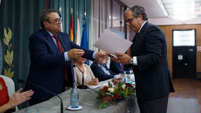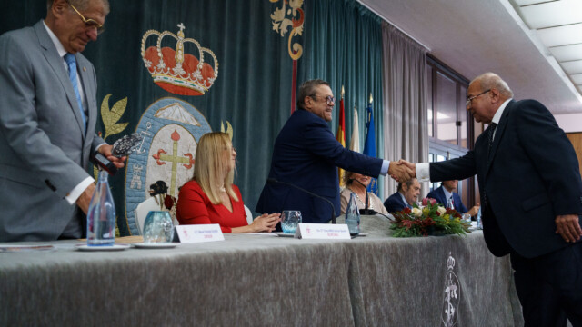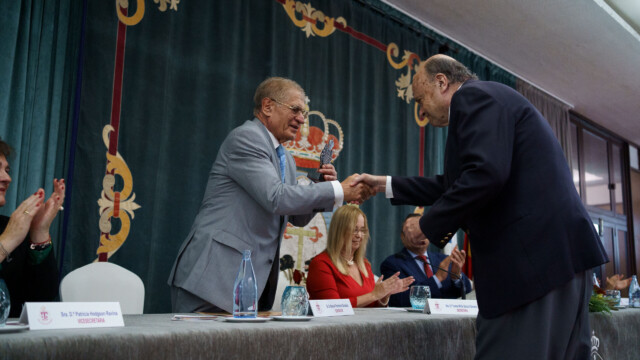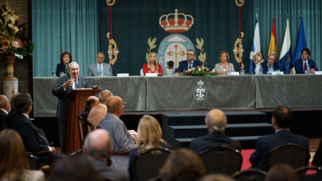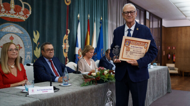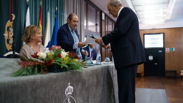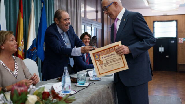 Finalmente, el presidente, Miguel Cabrera Pérez-Camacho, hizo entrega del Premio Faustino Martín Albertos -nuestra máxima distinción- a Jerónimo Saavedra Acevedo, expresidente del Gobierno de Canarias y exministro del Gobierno de España, entre otras muchas responsabilidades.