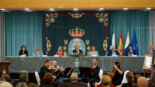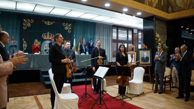 Tras sus palabras, ampliamente ovacionadas por el público asistente, se dio pase al breve concierto del Cuarteto Corelli, que finalizó con la interpretación del Himno de Canarias y del Himno Nacional.